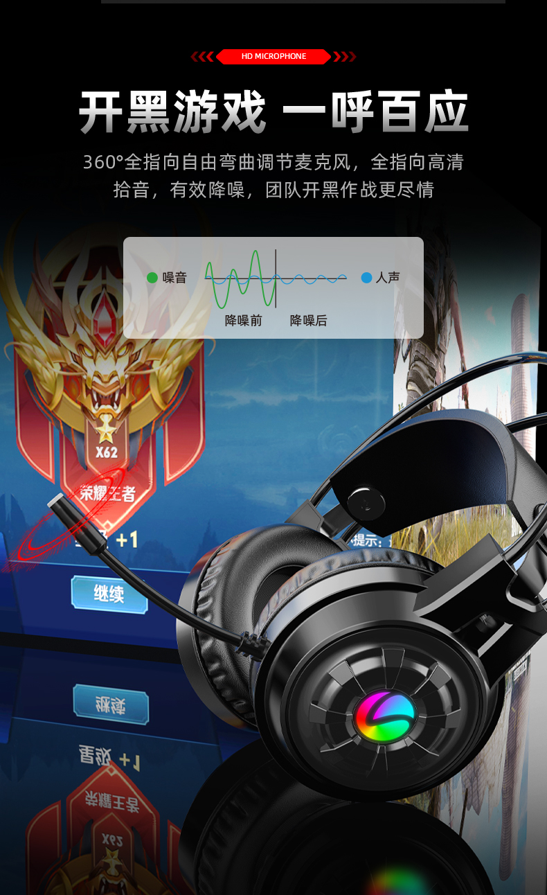 - USB连接,立体声,四声环绕,7.1声道,麦克风主动降噪,钛合金头梁
