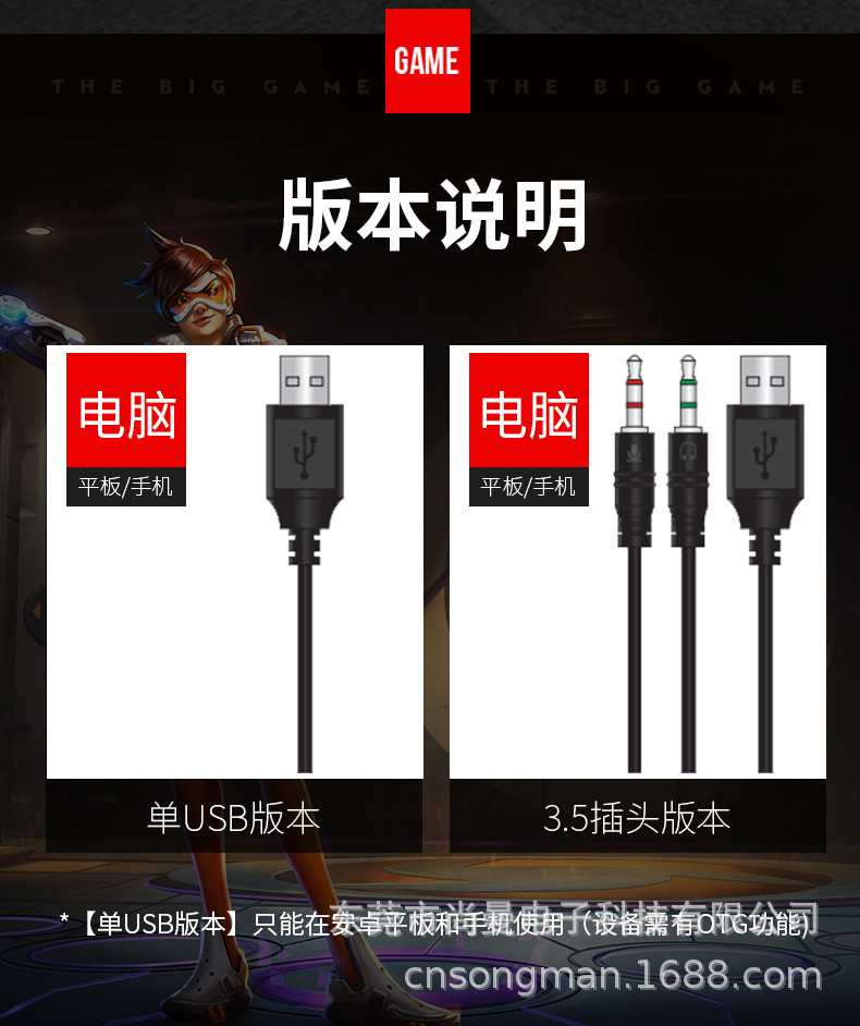 - USB连接,立体声,四声环绕,7.1声道,麦克风主动降噪,钛合金头梁