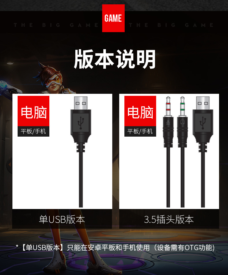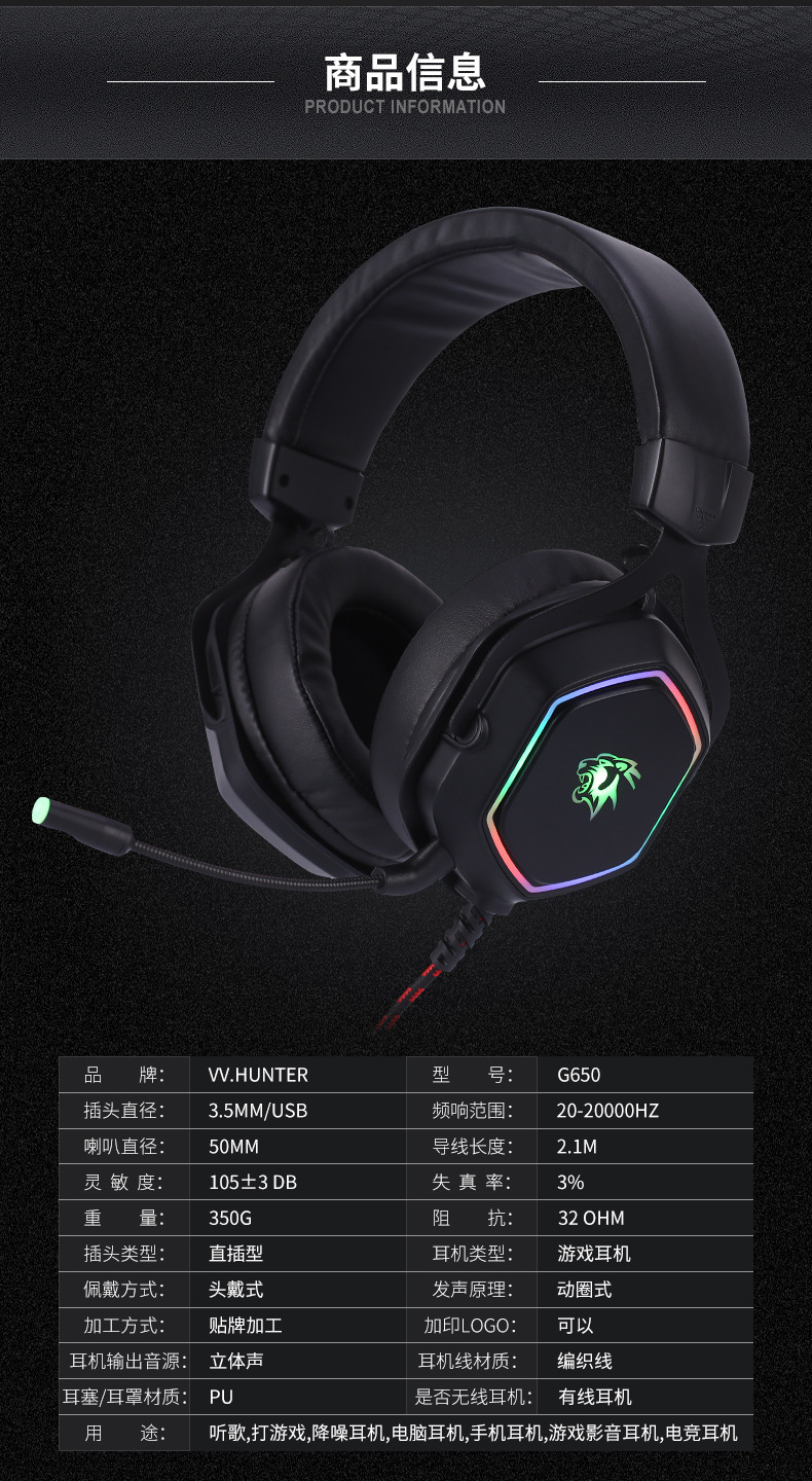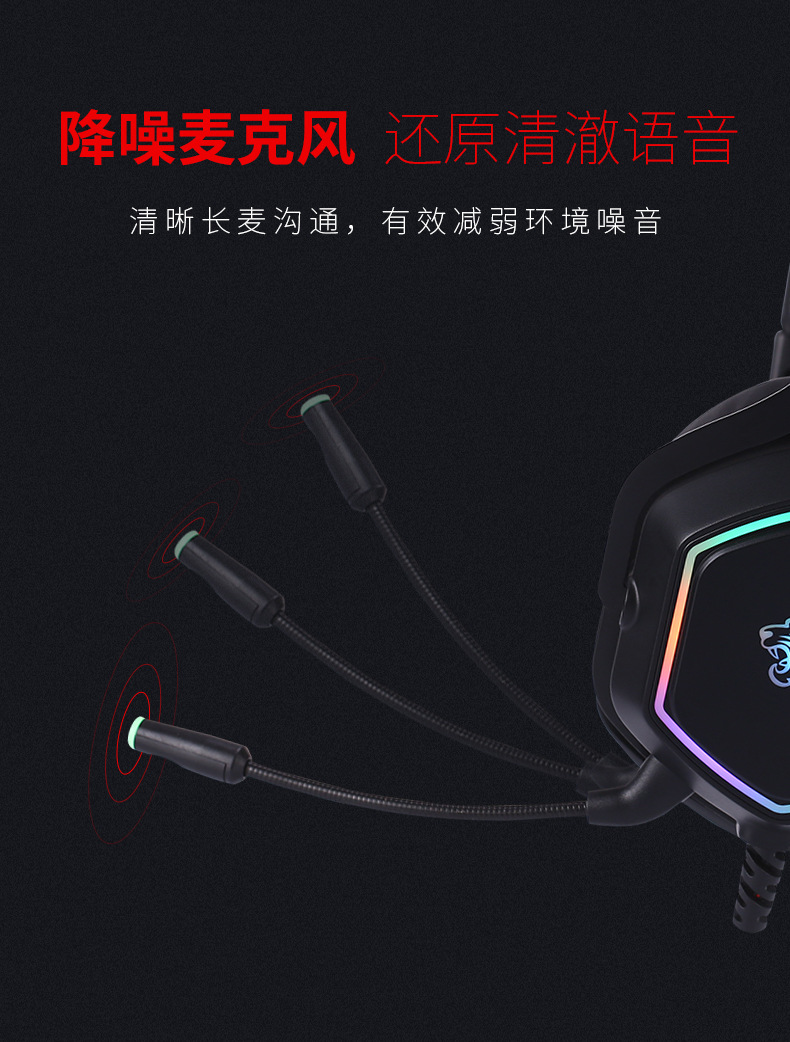 - USB连接,立体声,7.1声道,麦克风主动降噪,钛合金头梁