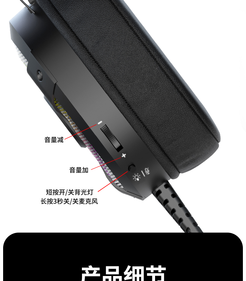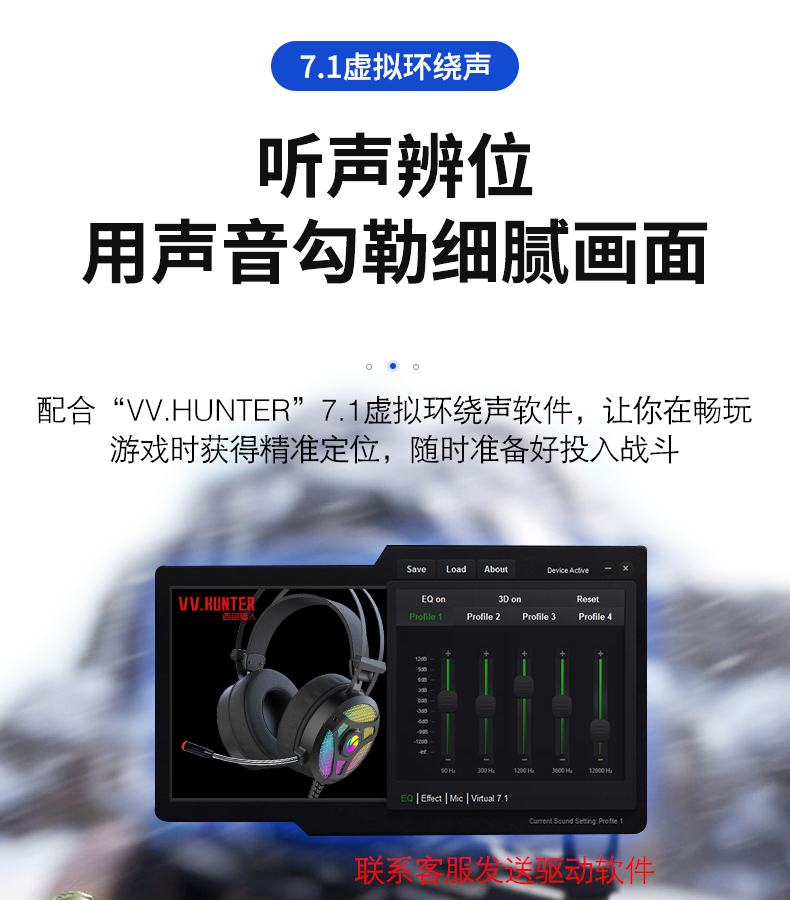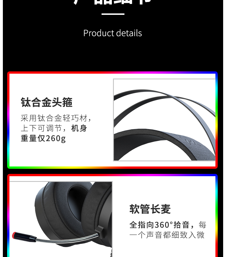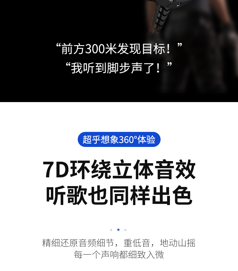 - USB连接,立体声,四声环绕,7.1声道,麦克风主动降噪,钛合金头梁
